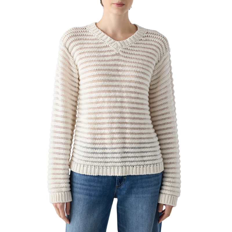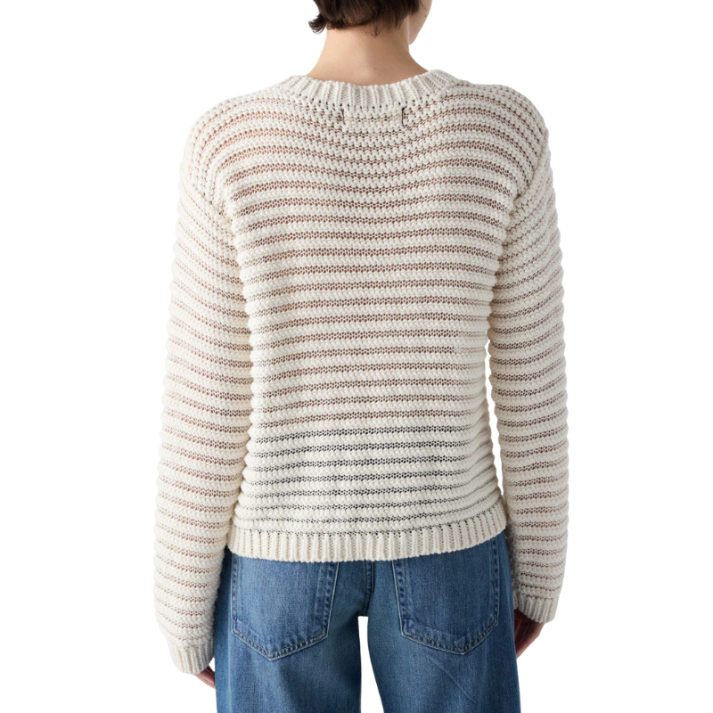 A perfect sweater for warm, transitional days. Lightweight with a touch of sheerness, it’s cropped just below the waist and finished with a shallow v-neck.