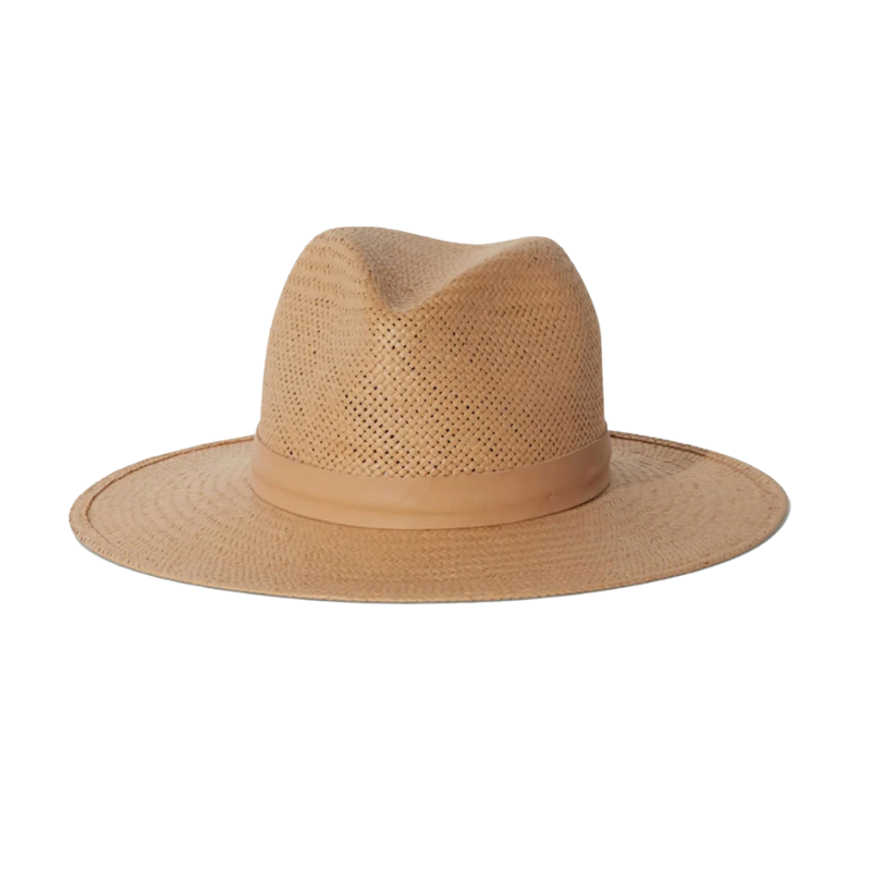 Simone is a classic style fedora made with packable straw and a structured modern shape. Rich sand straw with a tonal leather band creates a minimal and timeless look. This hat was made to accompany you to the beach, under the sun, to dinner, and anywhere you travel in between. You can roll and pack it for up to 1 day and it will return to its original condition.