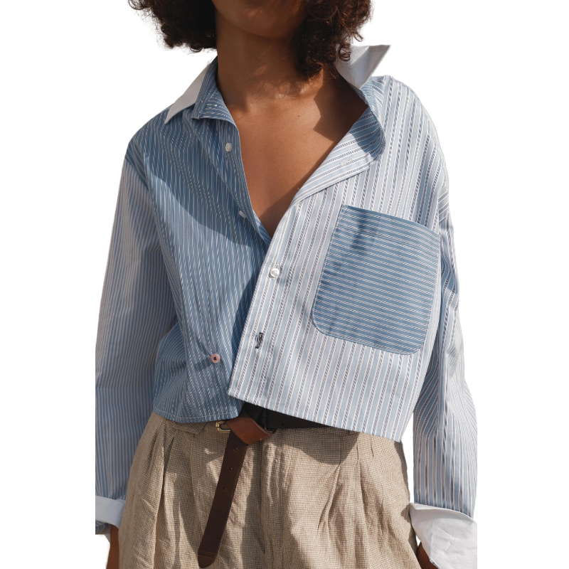 An extra short and a more edgy version of the classic button down. Constructed in upcycled scraps of luxurious 100% Egyptian Cotton from the prestigious Albini mill in Italy.