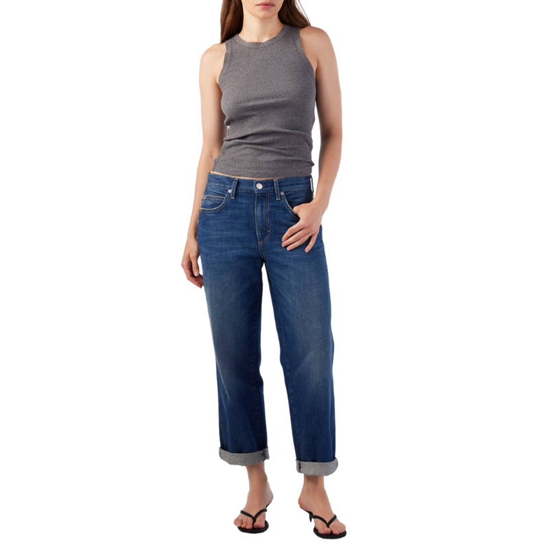 Meet your new favorite mid rise, relaxed straight leg jean. Inspired by AMO's best-seller, the Billie, these jeans feature a more oversized fit as well as a slightly tapered and rolled leg. A fresh twist on a classic fit. Zip fly.
